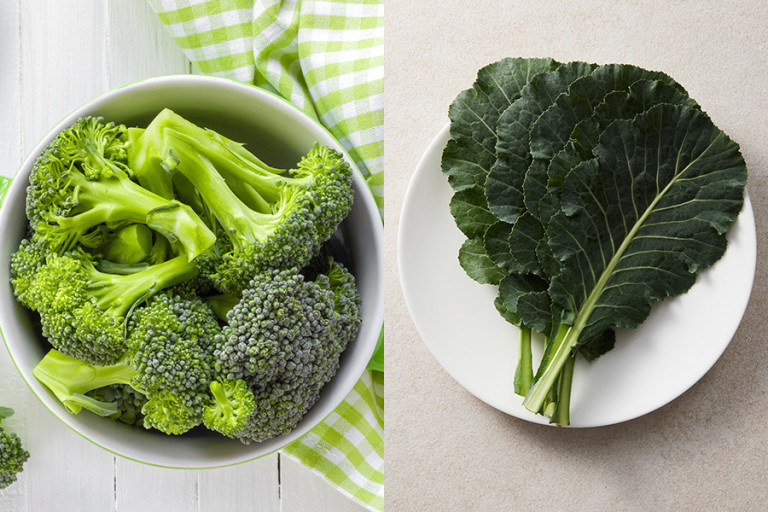 왼쪽 브로콜리 오른쪽 케일